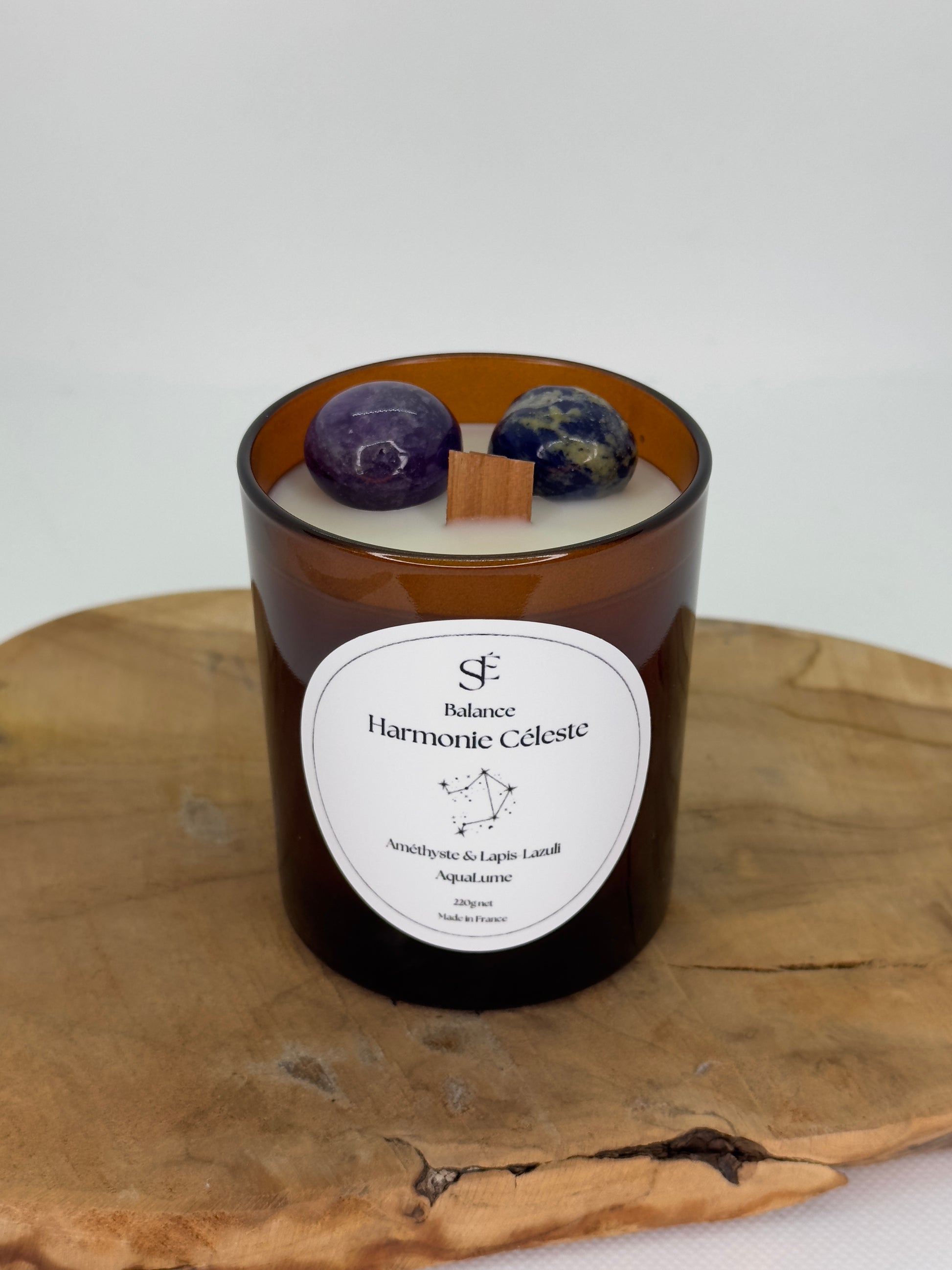 Une bougie lumineuse qui reflète la quête d’équilibre de la Balance. L’Améthyste apaise, le Lapis-lazuli favorise la communication sincère. Le parfum frais AquaLume inspire paix et légèreté.