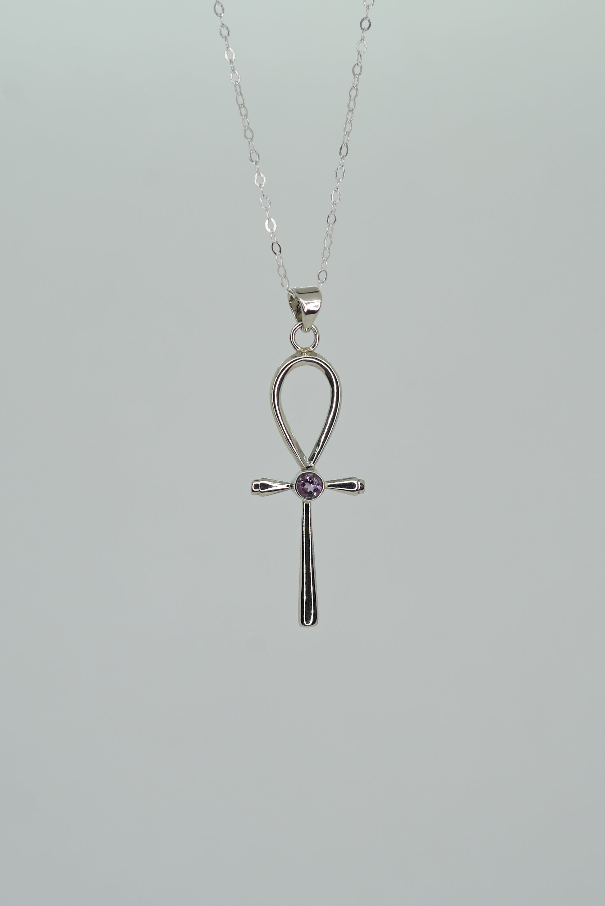 Collier Croix Ankh en Argent 925 avec Améthyste — Énergie & Protection
