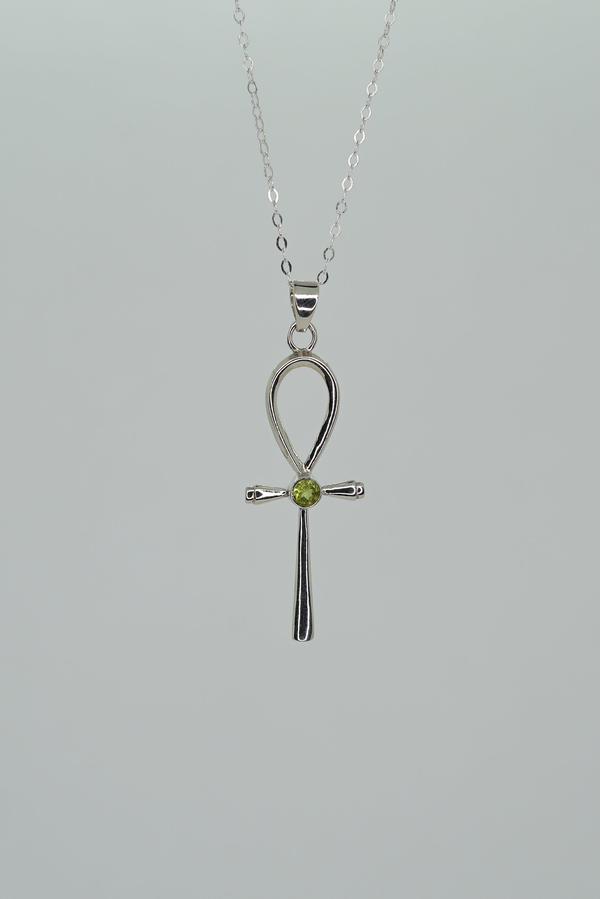 Collier Croix Ankh en Argent 925 avec Péridot — Vitalité & Harmonie
