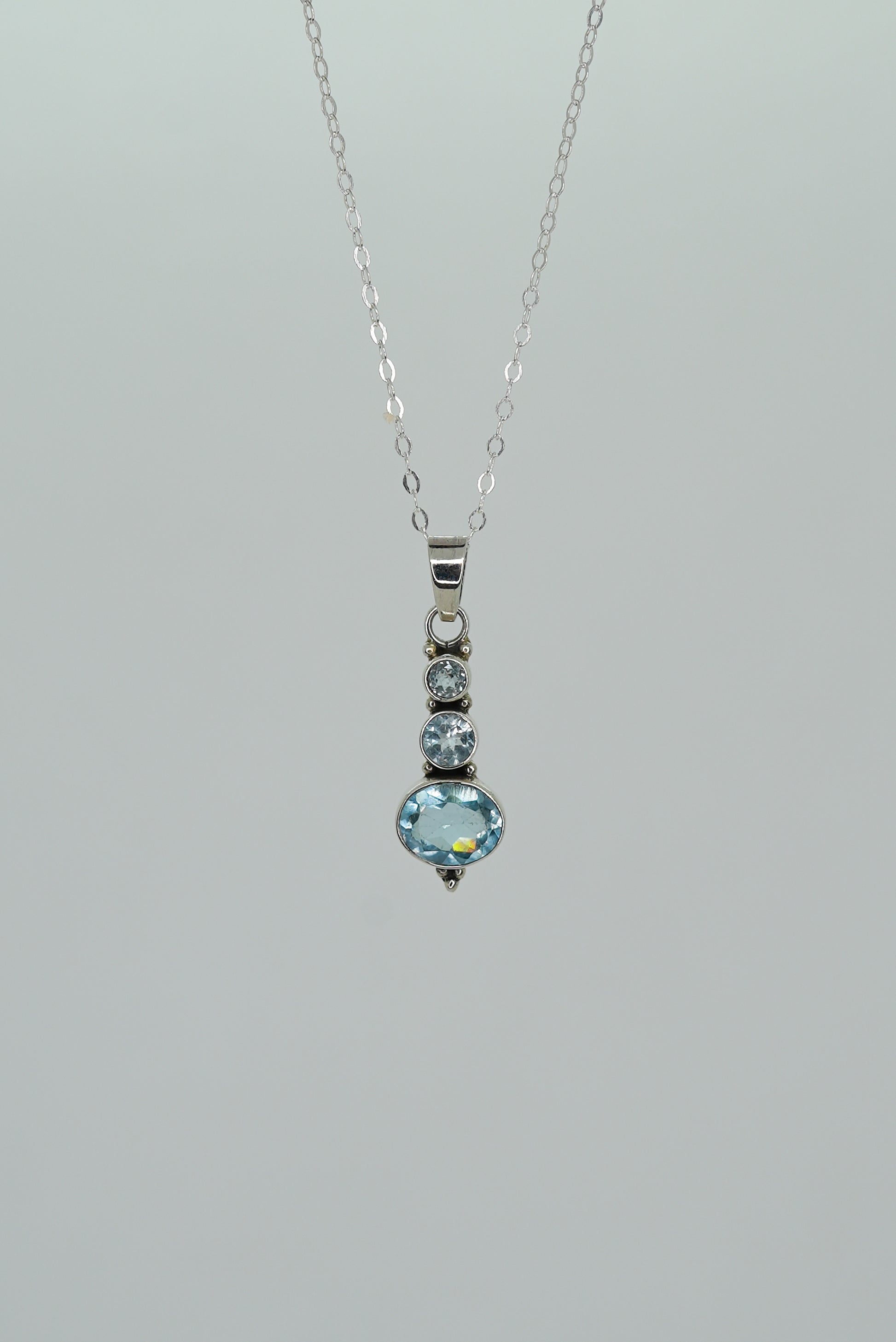 Collier Topaze Bleue 3 Pierres en Argent 925 — Sérénité & Communication